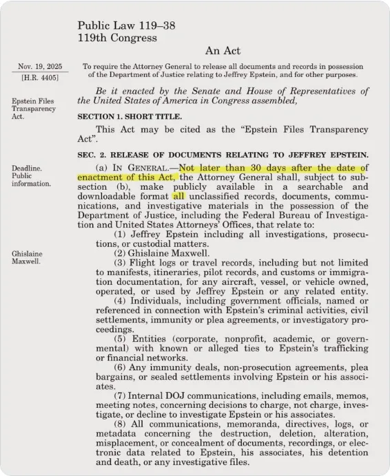 Epstein Files Transparency Act, signed into law November 19, 2025