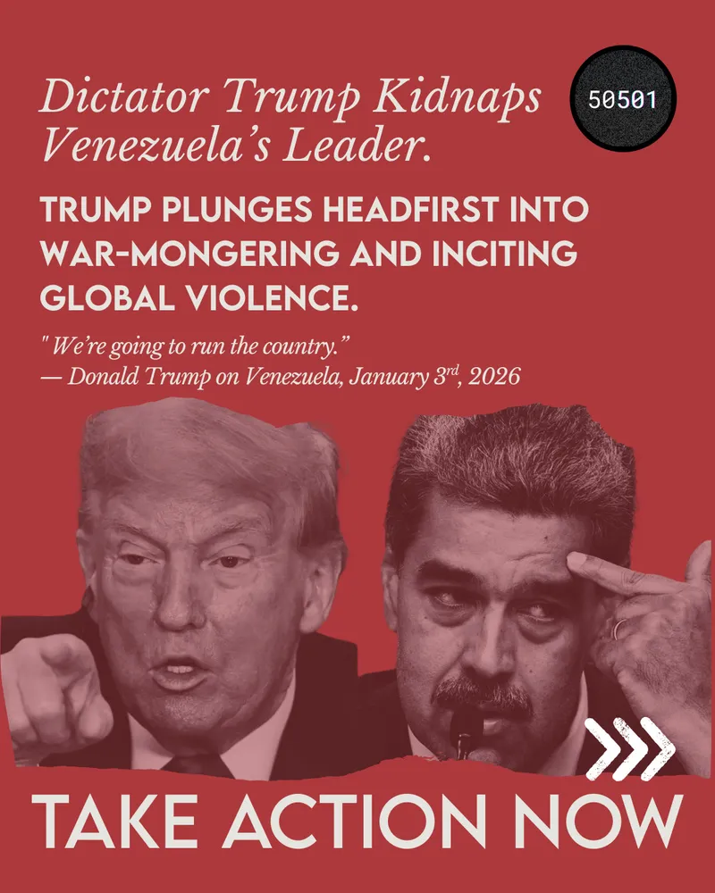 There is no legal, moral, or constitutional justification for this action. It is an outrageous act of war taken against a sovereign nation in a pathetic attempt to assume control of Venezuela's vast oil reserves. The Trump regime is trying to cover our country's failing economy, domestic turmoil, and its own plummeting approval ratings by launching a war against a made-up enemy to distract the media and the public.